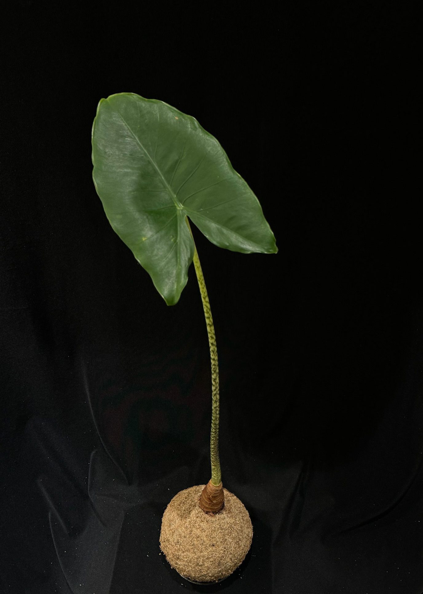 La tecnica del kokedama esalta l’eleganza naturale dell’Alocasia zebrina, avvolgendo le radici in una sfera di muschio che aiuta a mantenere un’ottimale umidità e favorisce una crescita sana. Perfetta per interni dallo stile moderno e minimalista, questa pianta è una scelta decorativa d’impatto, ideale per essere posizionata su ripiani o come punto focale in un ambiente luminoso.
