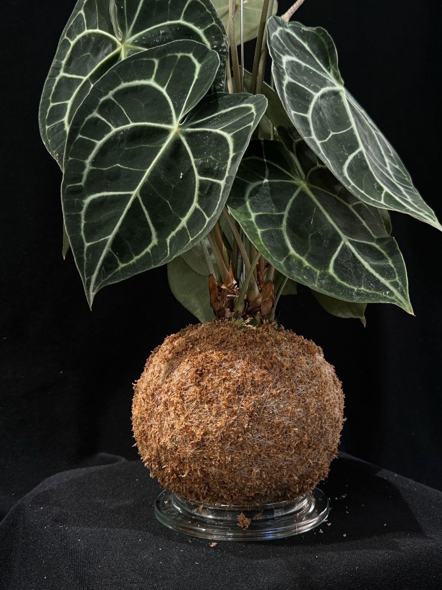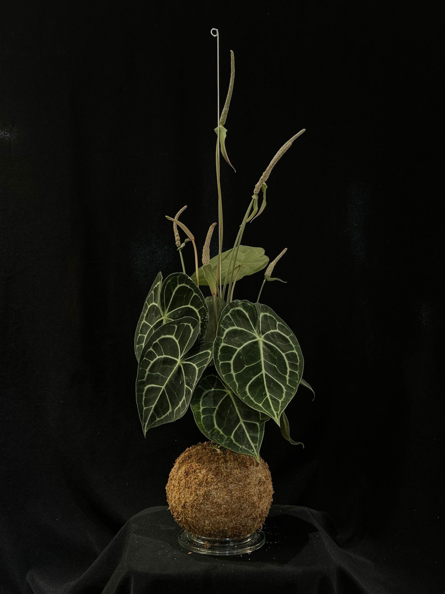 Un kokedama elegante e sofisticato, perfetto per gli amanti delle piante rare e scenografiche