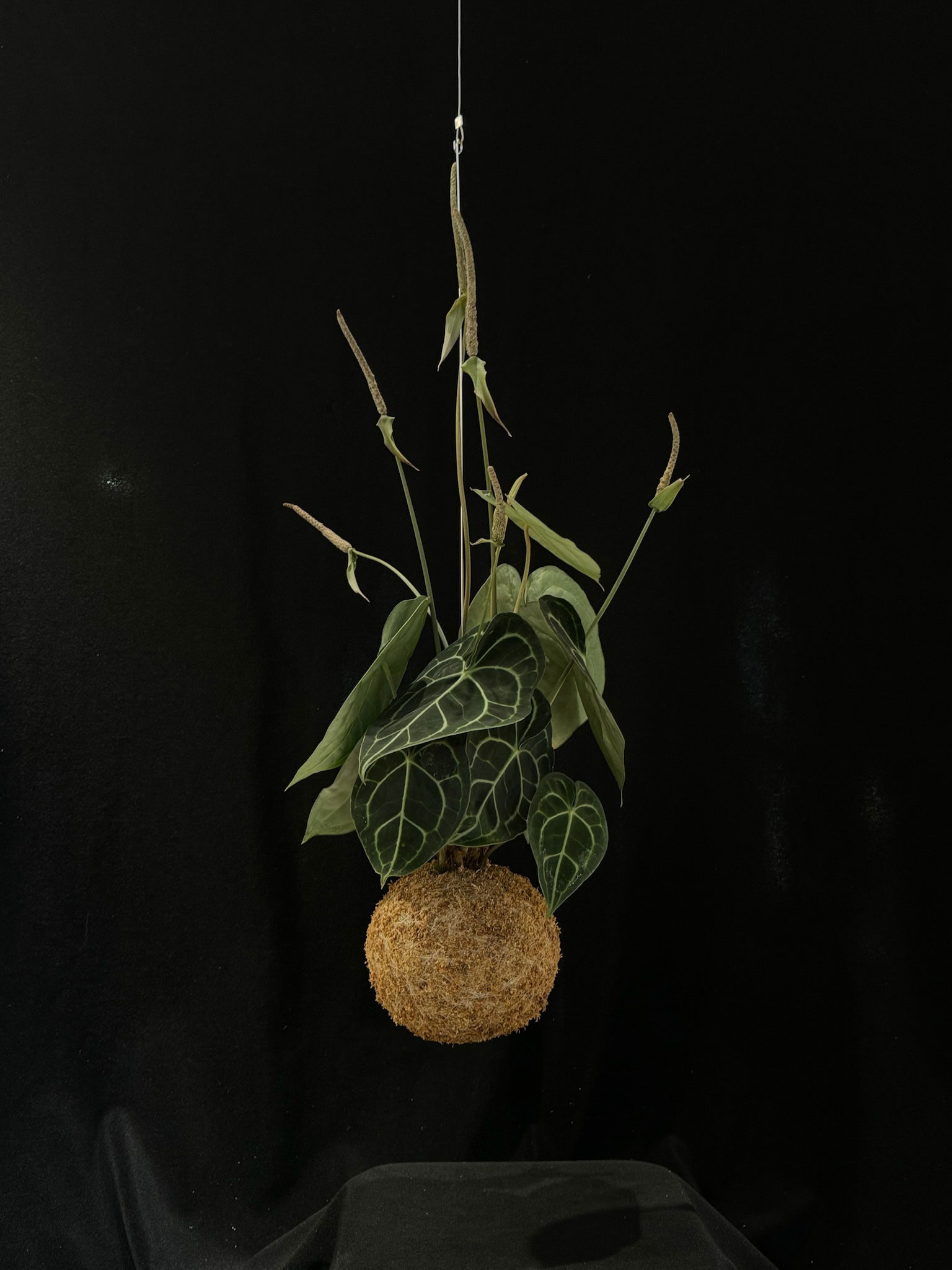 Perfetto per interni moderni e raffinati, il kokedama con Anthurium clarinervium è una scelta di grande impatto visivo, ideale per essere posizionato su ripiani o sospeso per un effetto ancora più scenografico. La sua crescita lenta e la necessità di un ambiente caldo e umido lo rendono una pianta perfetta per chi desidera un esemplare decorativo e dal forte valore estetico.
